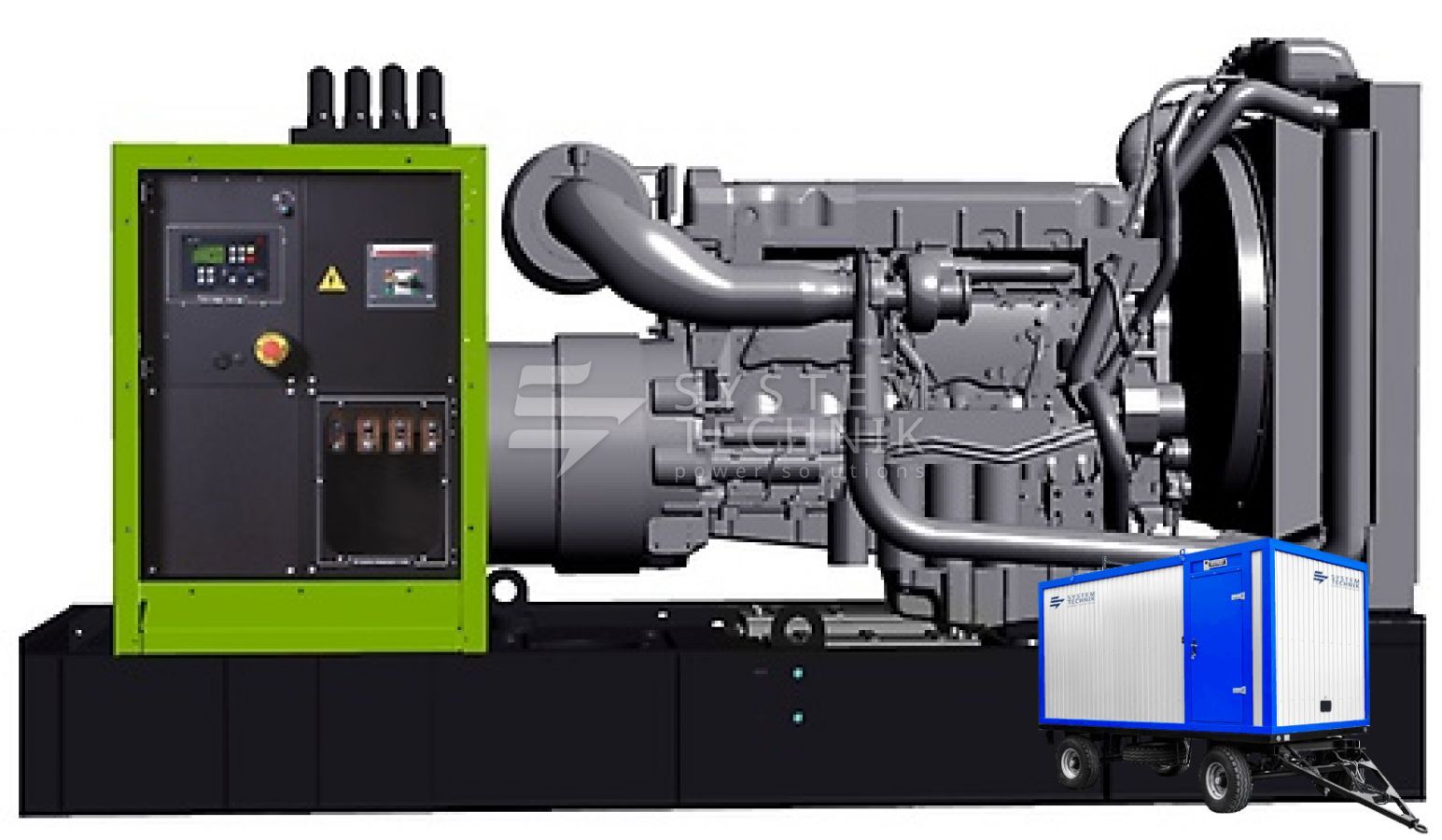 в контейнере на прицепе с автозапуском |
